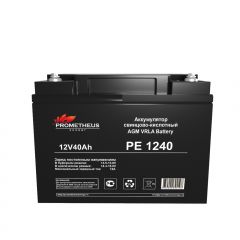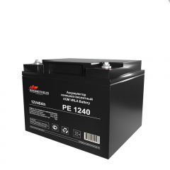 Свинцово-кислотный аккумулятор Prometheus Energy PE 1240 создан по технологии AGM, с абсорбированным электролитом. Предлагаемый аккумулятор является не обслуживаемым. Он герметизирован, а образующийся газ рекомбинируется. Долив жидкости не требуется. Корпус аккумулятора изготовлен из негорючего ABS пластика. Емкость аккумуляторной батареи для ИБП составляет 40 Ah, а рабочее напряжение 12 V. Устройство обладает низким саморазрядом (до 3%). Срок службы достигает 6 лет.